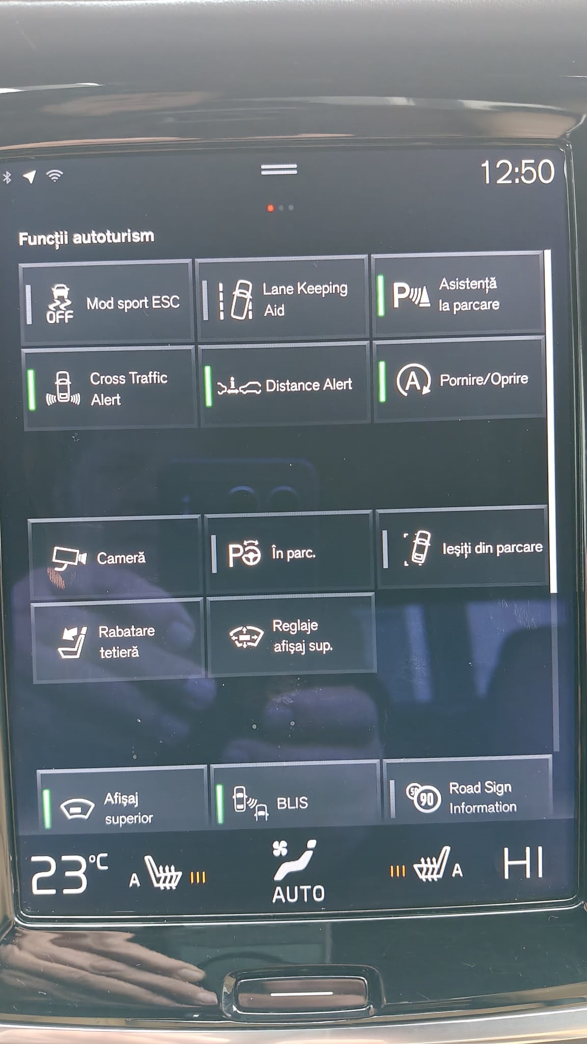 – Lane assistant si blind-spot – Keyless entry & start – Climatizare automată pe trei zone – Airbaguri frontale, laterale, cortină, genunchi – ESP, ABS, control tracțiune – Control presiune pneuri – Isofix – Asistență la menținerea benzii – Frânare automată de urgență (inclusiv oraș și pietoni) – Recunoaștere semne trafic – Internet access – Hill holder – Follow me home – Memorie scaune fata – Scaune față reglabile electric – Tapițerie piele